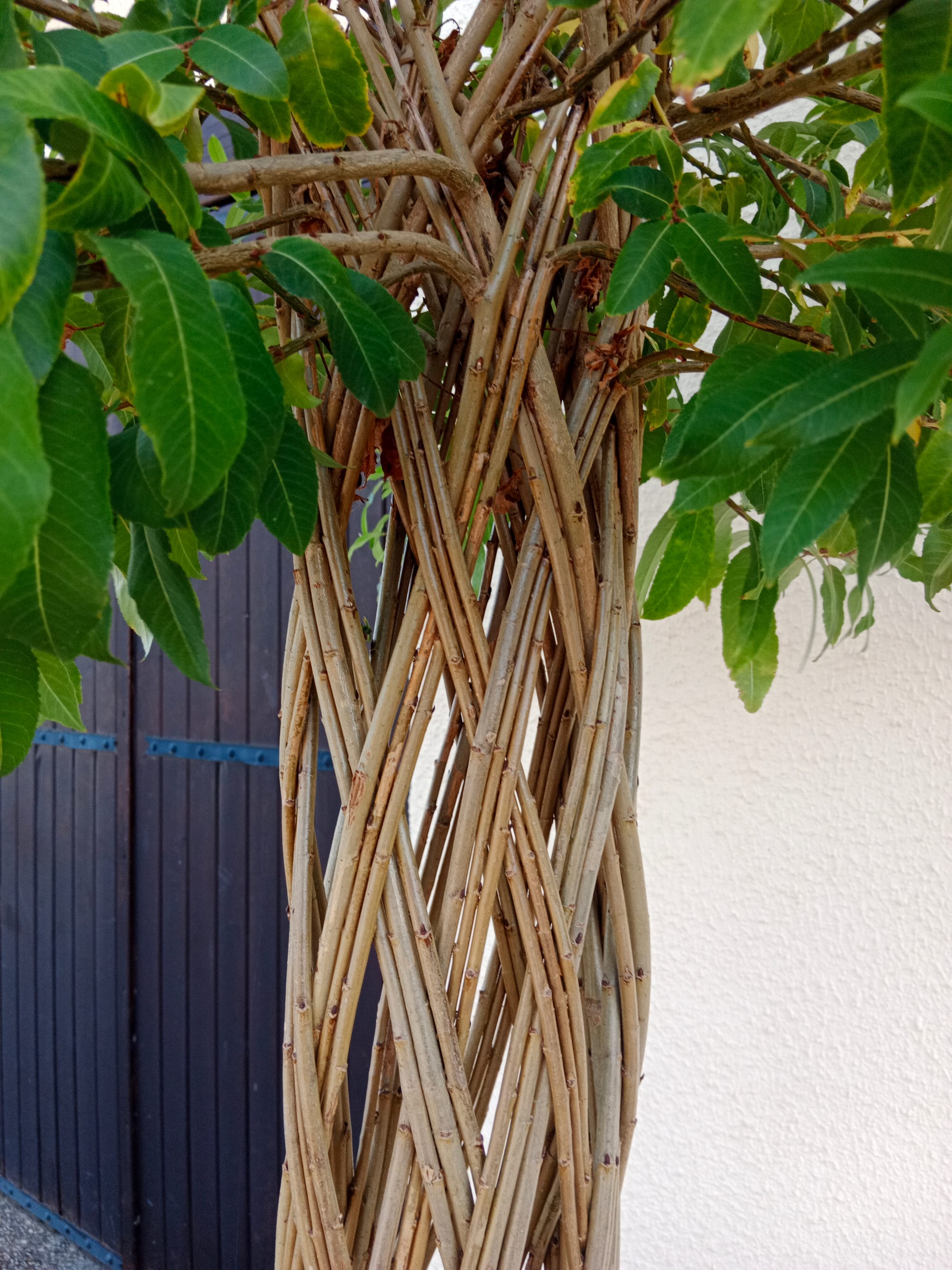 L'osier peut se tresser "frais" pour prendre racine et donner naissance à des structures vivantes magnifiques. Ces aménagements paysagers se réalisent pendant le repose végétatif, soit le plus souvent de décembre à mi-mars suivant la météo. Nous utilisons pour cela des variétés d'osier vigoureuses et parmi les plus résistantes au manque d'eau (dans une certaine limite bien sur, l'osier étant un arbuste hydrophile).
